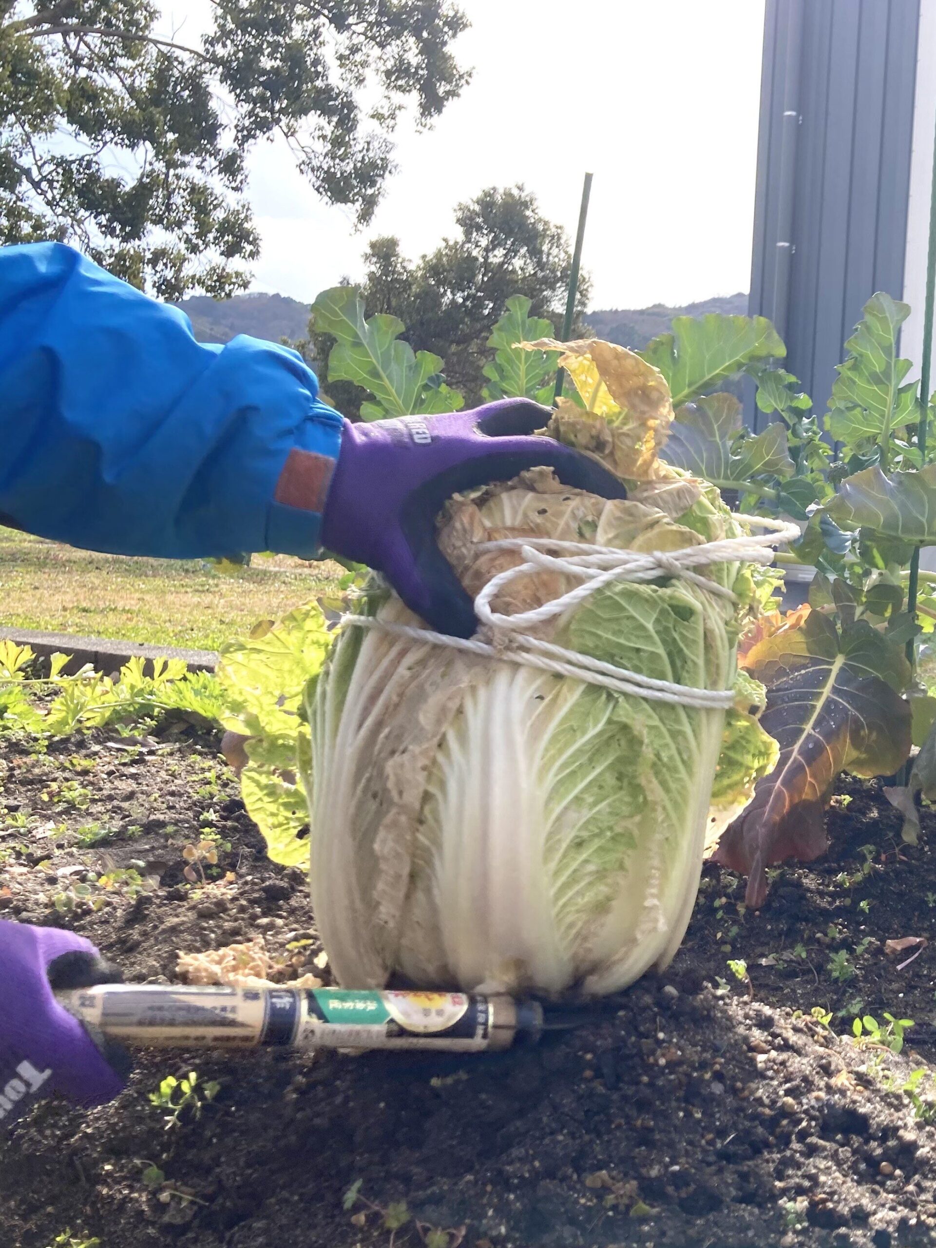 冬野菜たちは無事にすくすく成長し,立派な白菜が収穫出来ました。